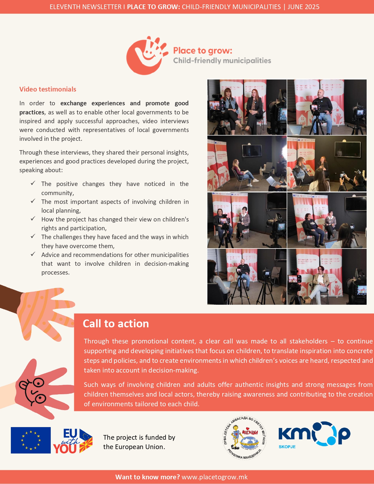 In this regard, video podcasts were realized with 19 children, as well as video testimonies were recorded with 7 representatives from the municipalities of Veles, Vinica, Debar, Gostivar and Kisela Voda.